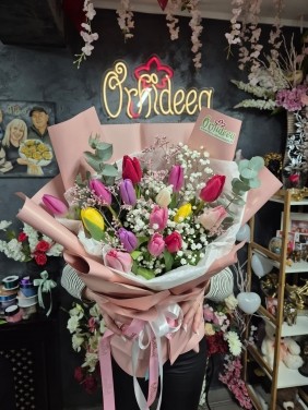 Adauga culoare si emotie oricarei zile cu un buchet elegant din 15 lalele multicolore, atent selectionate pentru prospetime si frumusete.