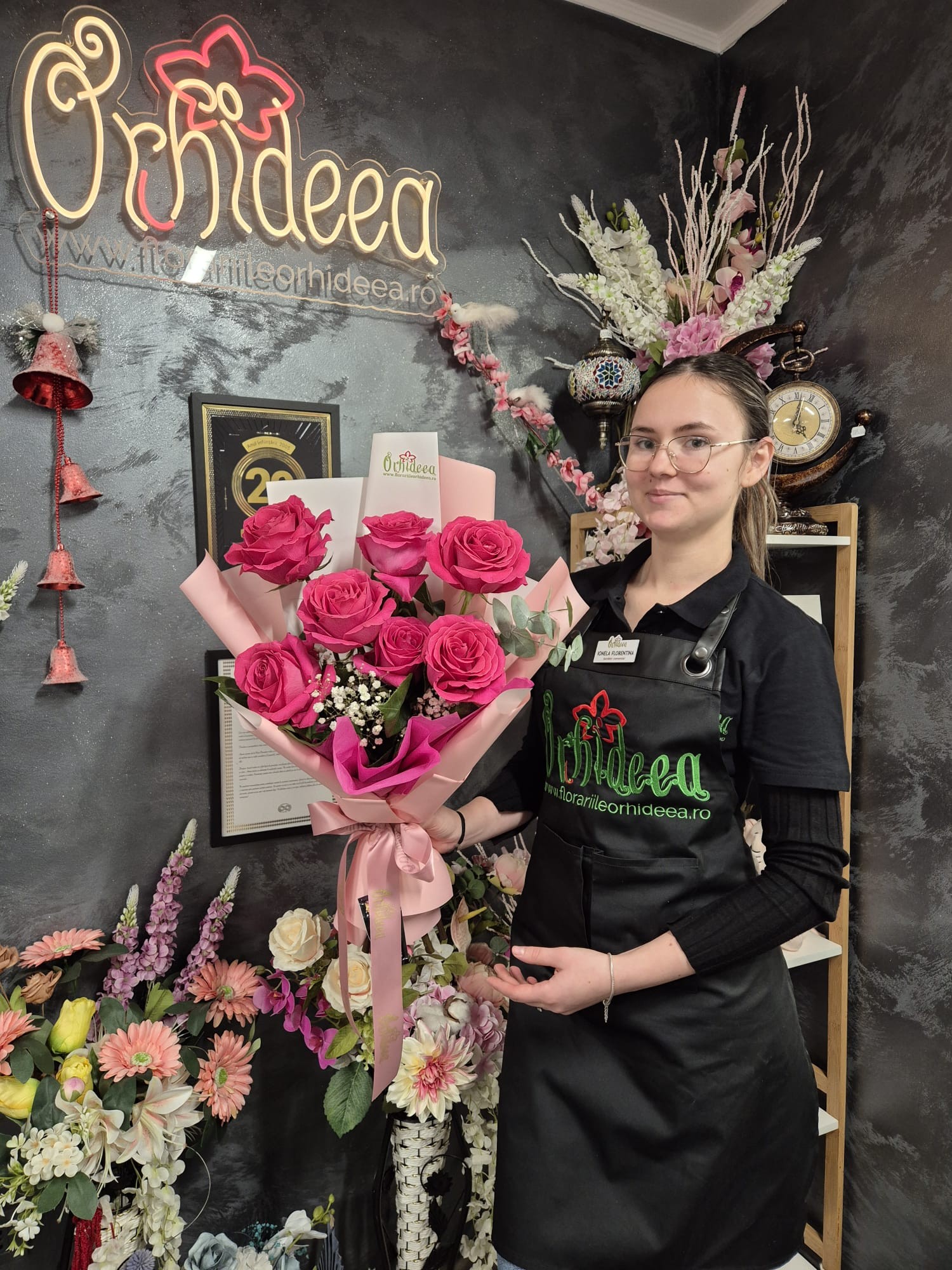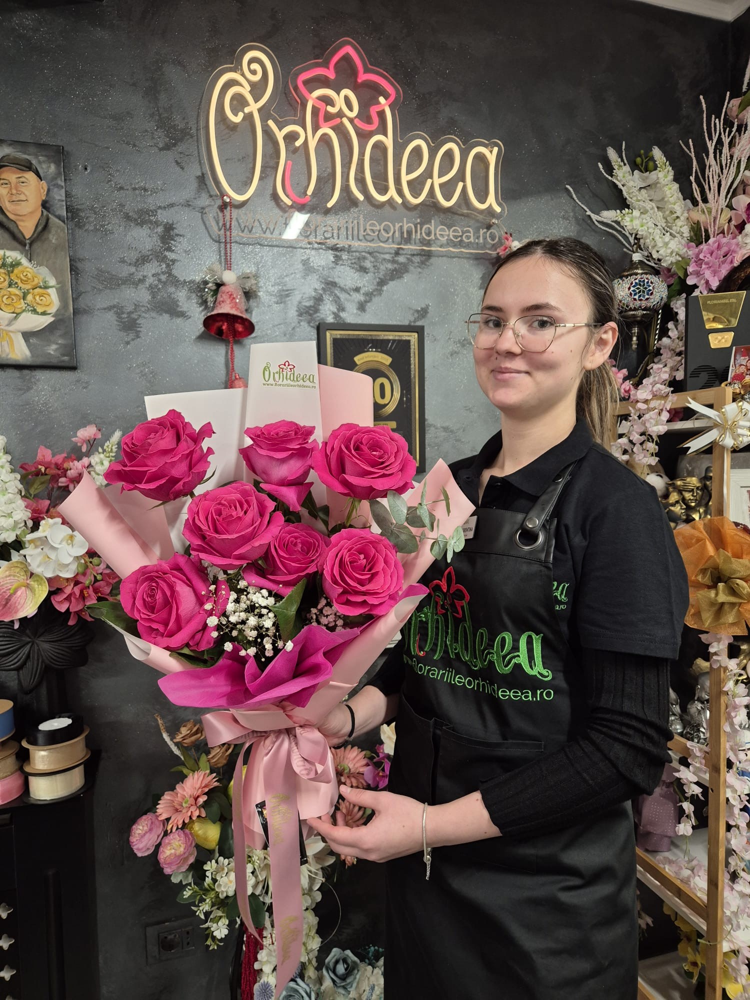 Acest buchet ELEGANT poate sa contina : 7x Trandafiri Pink Floyd, 1x Gypsophila, 2x Eucalipt, ambalaje si fundita plus o felicitare(inclusa in pret) unde sa notam mesajul dumneavoastra.
