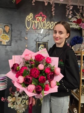 Acest buchet MINUNAT poate sa contina : 19x Bujori, 3x Limonium roz , ambalaje si fundita plus o felicitare unde sa notam mesajul dumneavoastra.