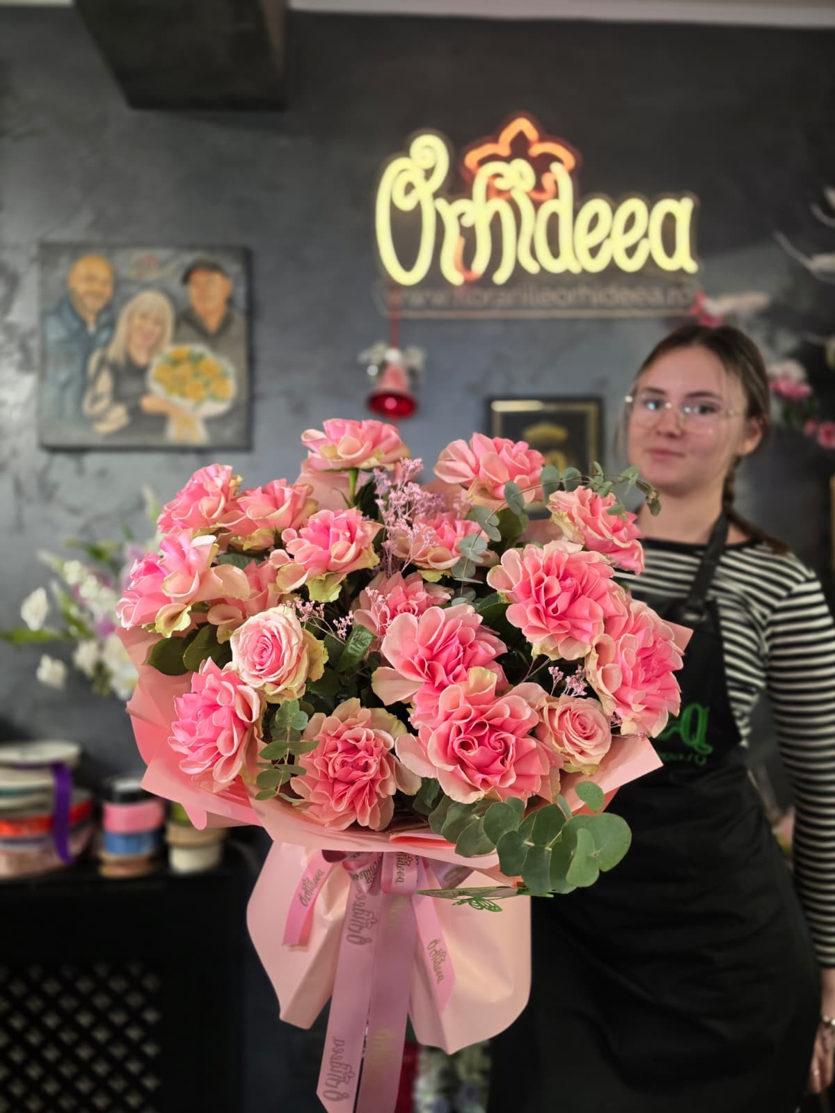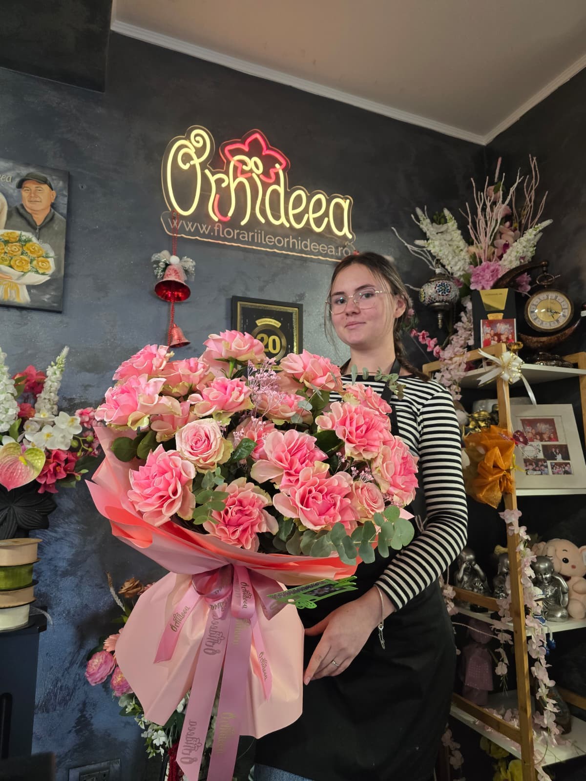 Arata-i ca te gandesti la ea! Buchetul din trandafiri roz ramane un simbol al gratiei si feminitatii fiind perfect de daruit iubitei sau unei persoane foooarte dragi tie.